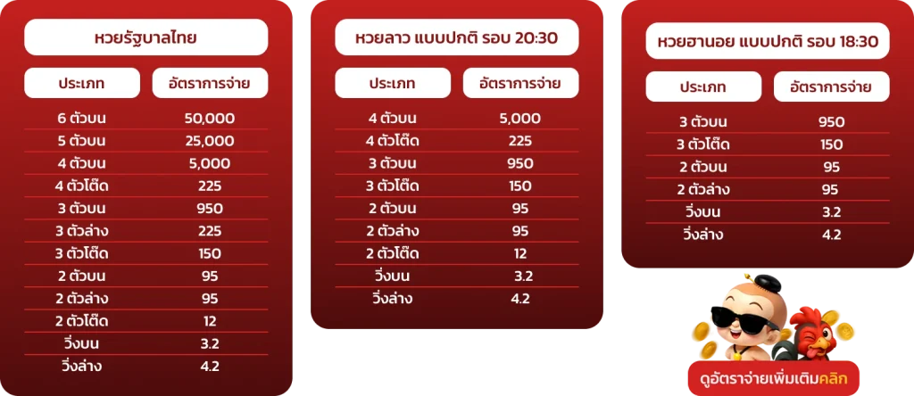 ทุกการลงทุนไม่ว่าจะมากหรือน้อย มีโอกาสทำกำไรได้ง่าย ระบบสุ่มเลขและตรวจสอบรางวัลออกแบบให้ผู้เล่นมีโอกาสถูกรางวัลมากขึ้น ทำให้ไม่ว่าจะเล่นครั้งแรกหรือเล่นประจำก็สนุกและลุ้นรางวัลได้ต่อเนื่อง นอกจากนี้ยังมีตัวช่วยและสถิติเลขเด่นจากงวดก่อน ๆ เว็บ รวยจัง เพื่อให้ผู้เล่นนำไปวิเคราะห์ เพิ่มความมั่นใจและความตื่นเต้นในการลงทุนทุกงวด